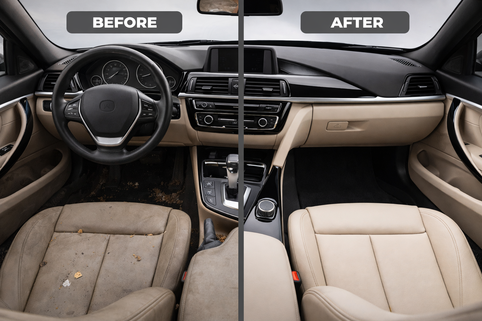 - Deep interior cleaning (seats, carpets, plastics)